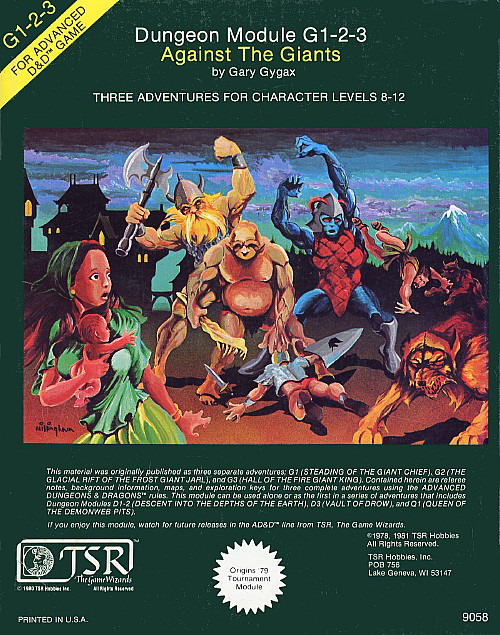 giantsAgainst the Giants, Oh how much fun this Module set was. I do recall going through at least three PC’s my first time around. Most memorably taking a Batista  sized crossbow bolt to the chest that crit and stuck my poor Thief to the back wall of the room. This oddly enough might have been my least survived Module in my adventuring days. Even over the Dreaded Tomb.