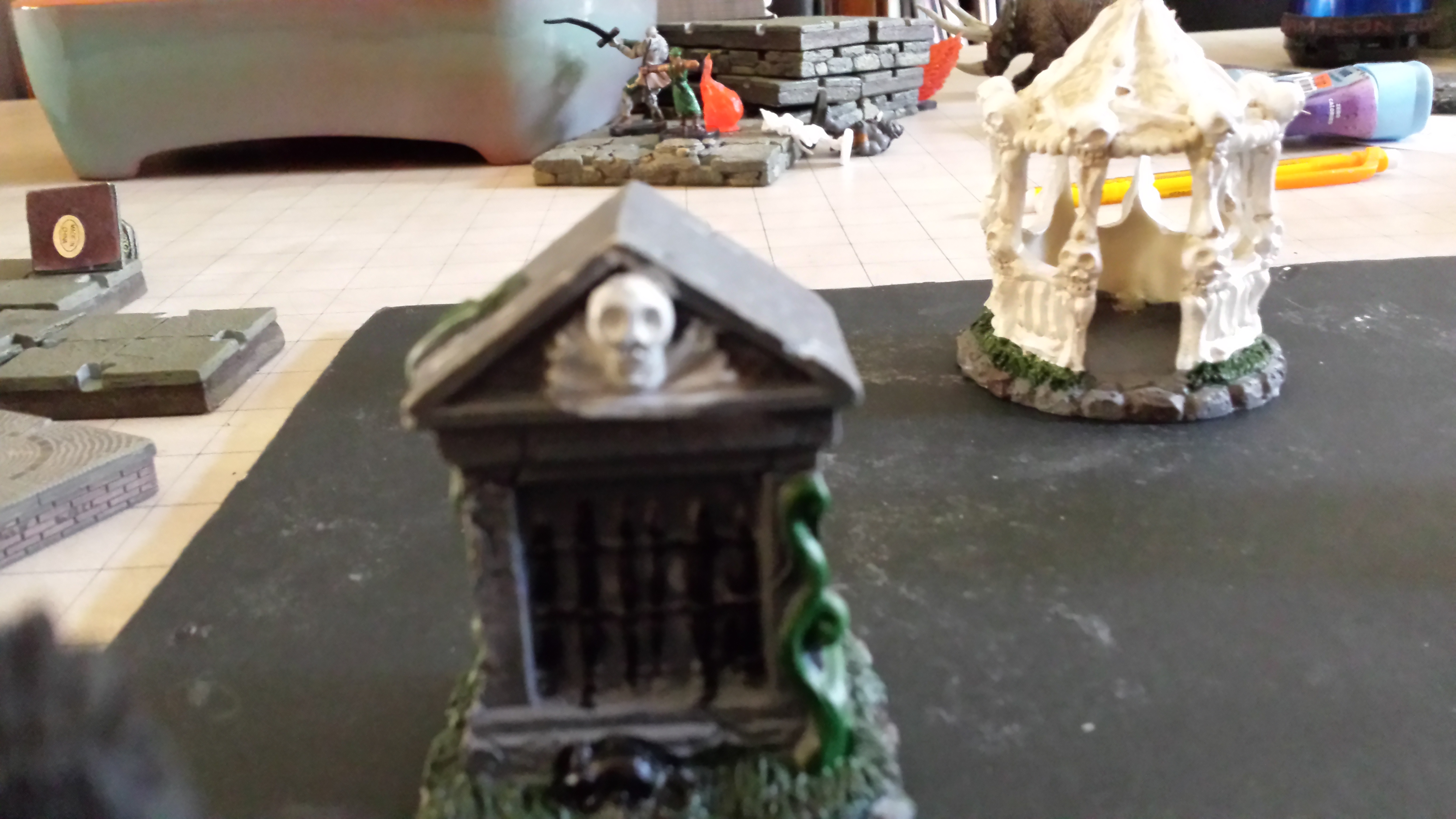 Not a bad little pile of goodies. I picked up the spooky town fencing at Michaels A&C. As well as the tombstones and Weeping statue. All for under $15 dollars on a 50% off sale and a half off mark down. The Gazebo and the Mausoleum were a dollar each. So all in all I got a nice little grave yard for under 20 buck. SO with a little looking and a bit of luck there are great deals out there to be had. Granted it is not Dwarven forge but it also does not come with the price tag of DF. And it looks great along side of it. So there you go cheep cool terrain that wont break your wallet. SO get out keep your eyes open for deals and have a great games ! Next week Paper Terrain, Fold flats and Isometric maps on the cheep.