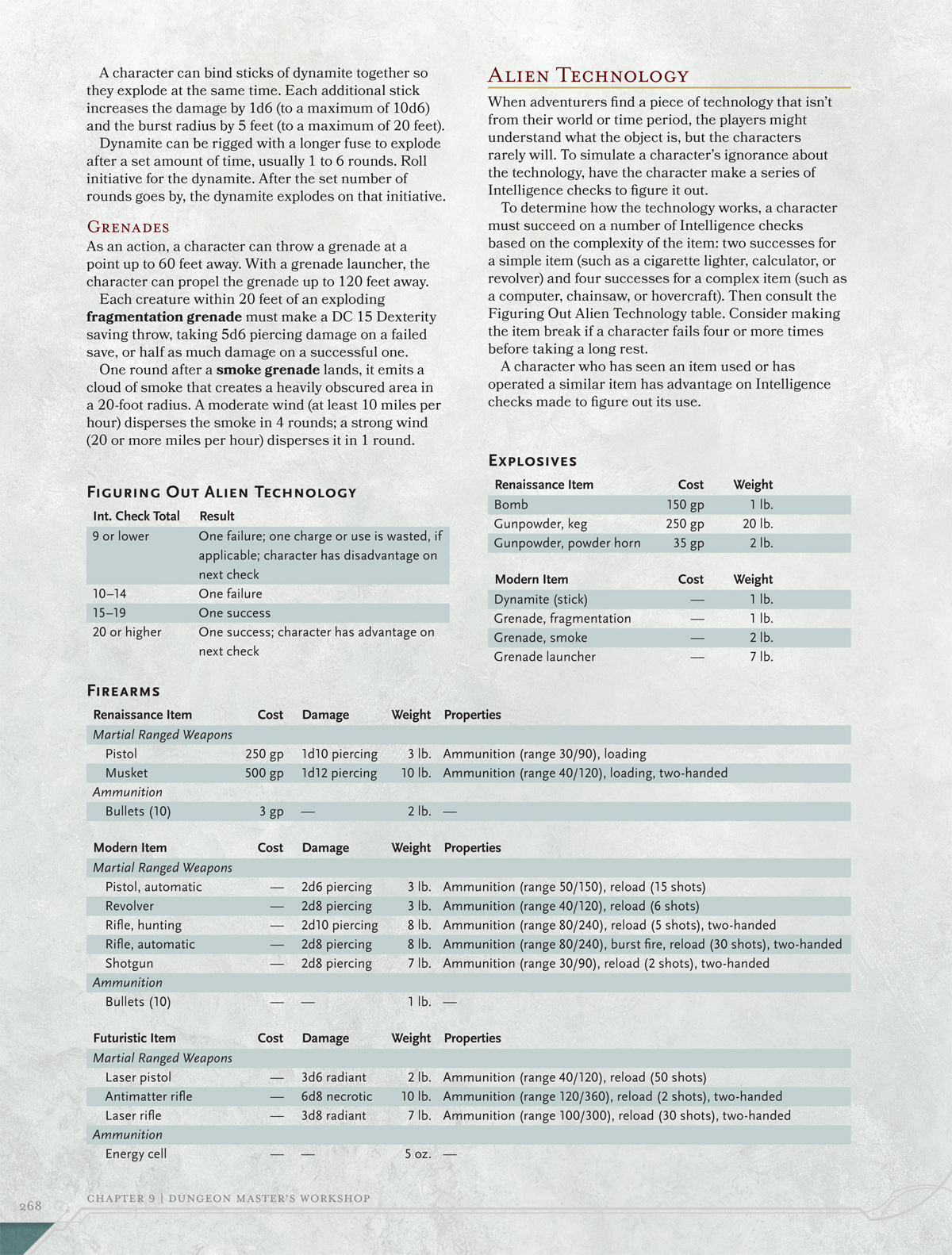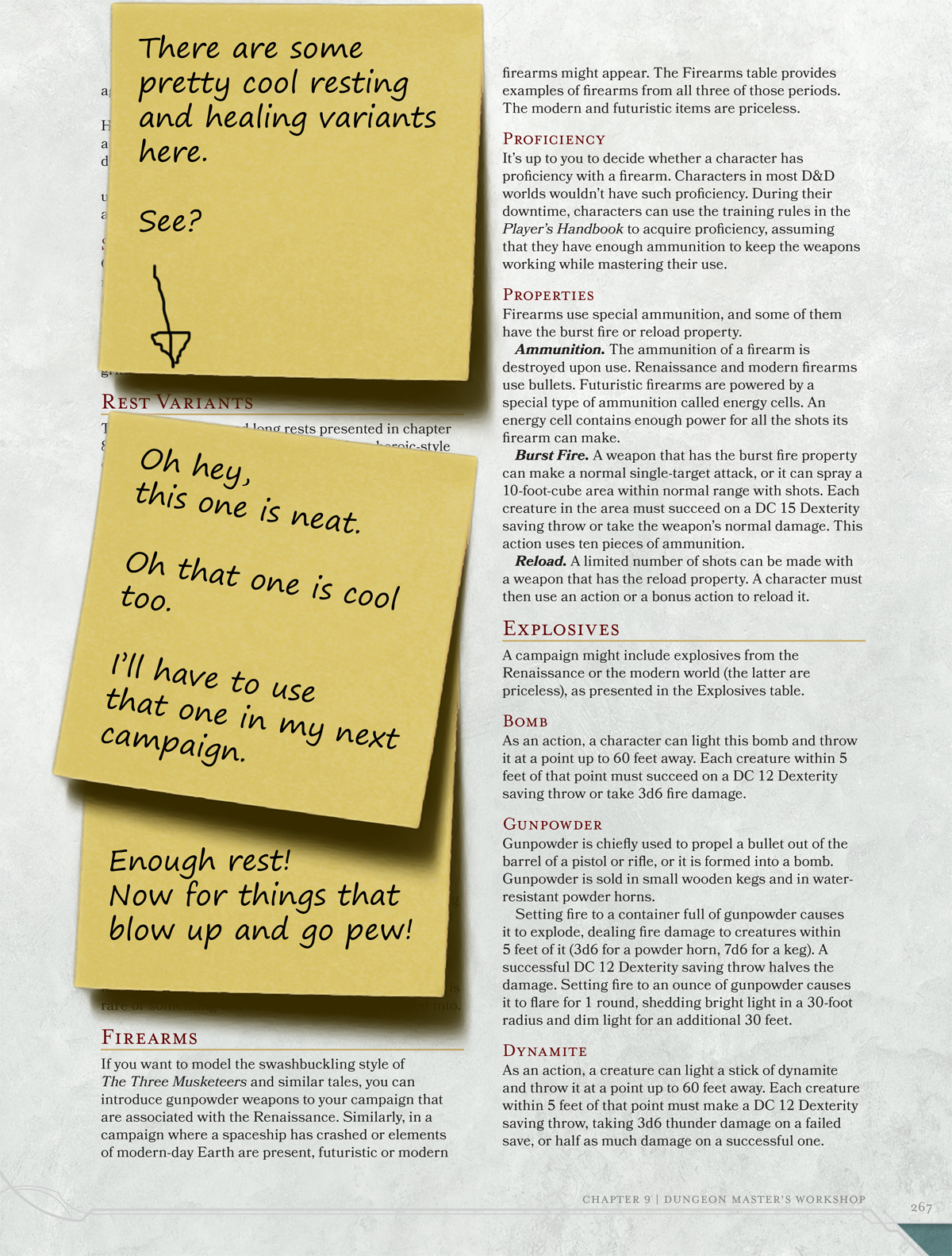 And all the cool toys ! Guns, Guns and more guns! And before you get all upset about keep your guns out of my D&D games. Remember that the tools in the DMG also have variant options for games. Hence alien tech and Firearms. Now lets take a look at the sweet and juicy toys !
