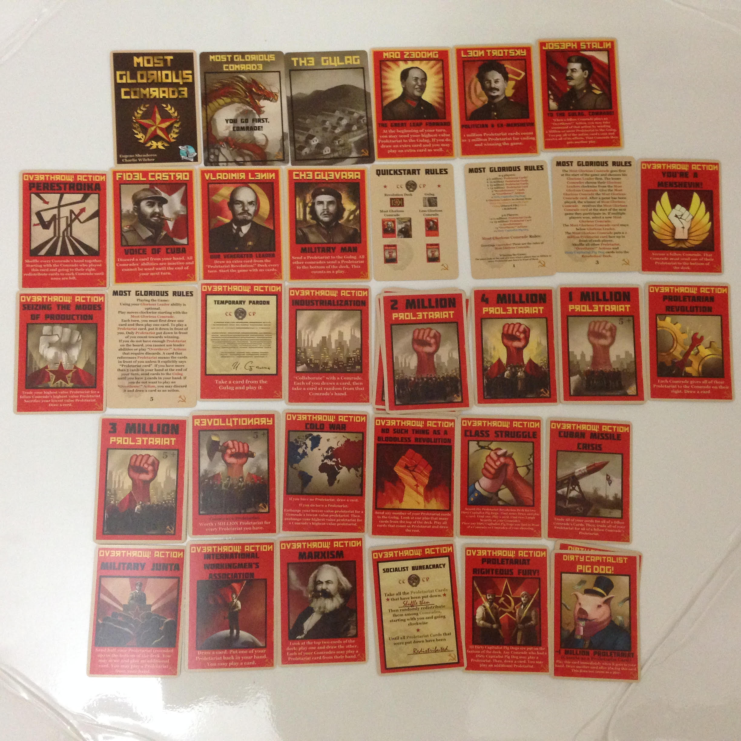 Most Glorious Comrade is a fast placed game for 2-6 players play time ranges from 5-30 min. The game on average had a run time around 15 min. As with most games of this type play time will go up slightly with more players. The play goal is to reach ten proletariat to win the game, Sounds simple right ? Well comrade you might be in for a surprise.