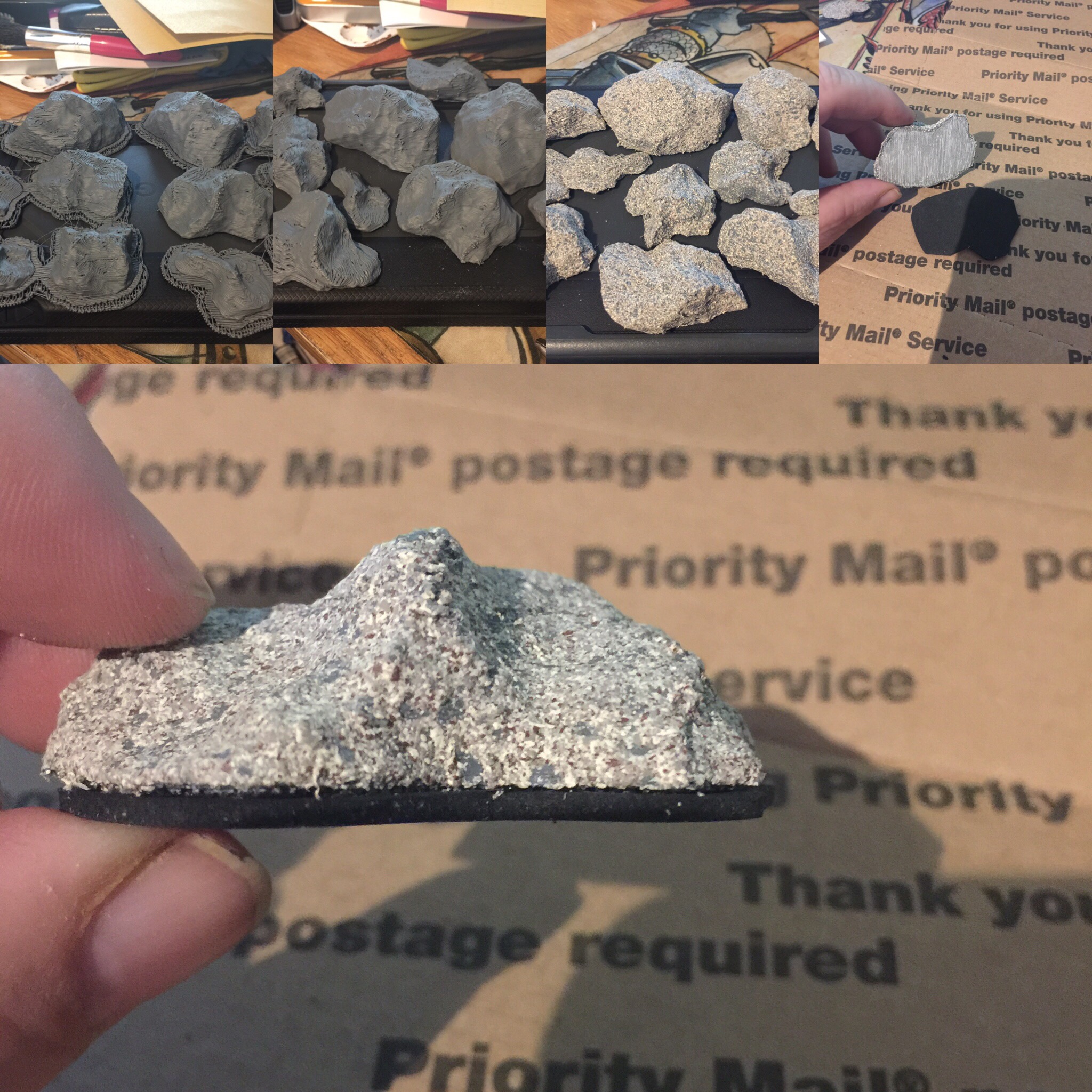 So I set to the task of crafting some asteroids, I have made a set that I like very much in the past but they have a few negative aspects that I will touch on later. I headed to the internet to see if anyone had done some of the hard work for me already and it turned out that they had. On thingverse I found two styles of asteroids and decided on the half rock asteroids over Rocks on stands.