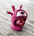 So I headed to the store and picked up a couple of sets of eyes and returned home to finish up my project. I stuck the cute little beholders in the oven and let them bake till they were done. Then I glued each of their eyes in place after they had cooled. The result was just as I had hoped. A little derpy dice holder beholder, success! I decided to glue them down on some large bases so they were less likely to tip or fall over at the table just in case.