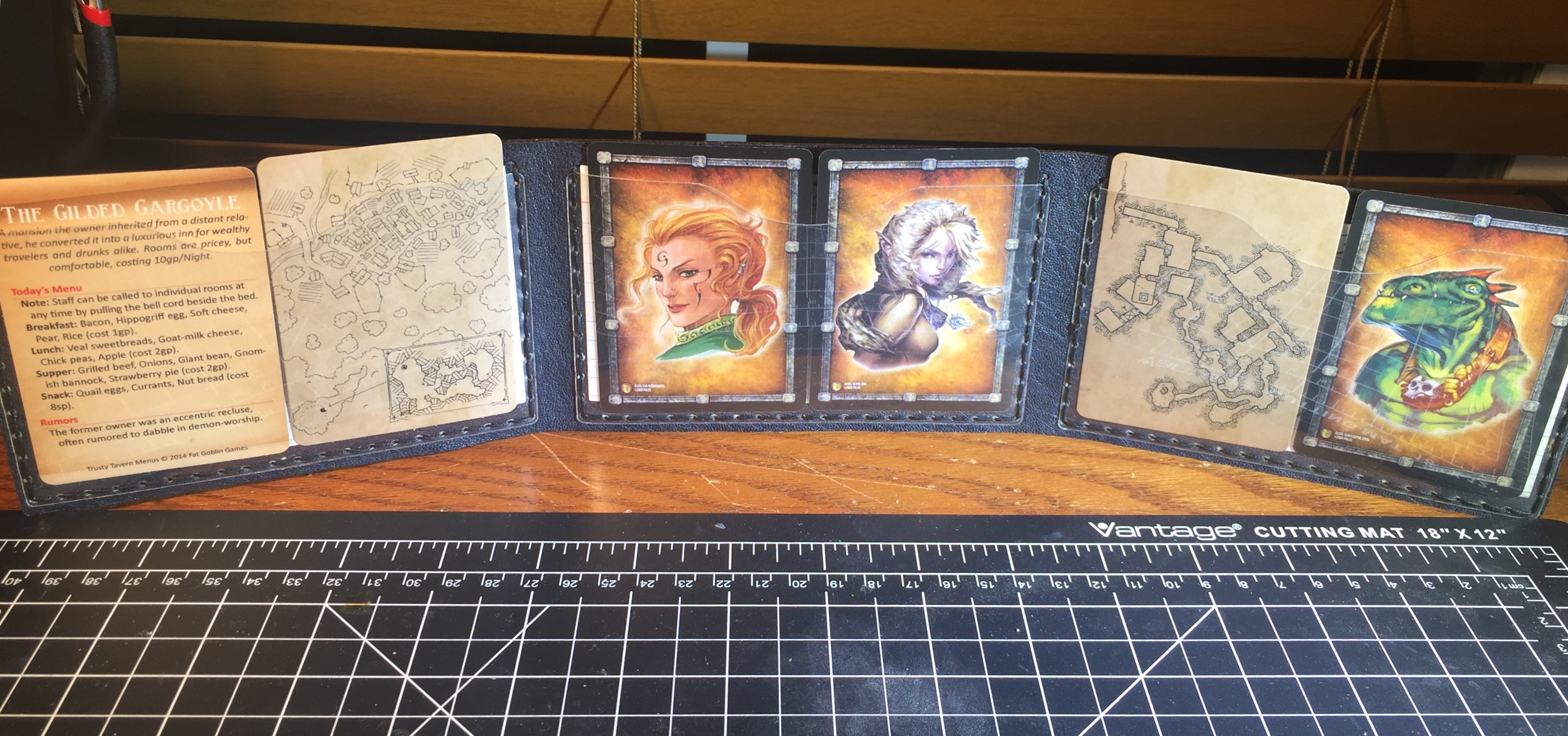 I also discovered that with the magnets. I also have the ability to snap my Paizo face cards to the game screen for added depth of role play. Allowing my players to add faces to the NPC’s they meet. This is a huge benefit when traveling. In a convention setting your players will need all the help, they can get to remember who they encounter. I am looking forward to this year’s upcoming MACE convention to show this awesome wallet game screen off to my friends and fellow gamers. If you think this is as nice a portable screen as I do and you would like one of your own. Give a shout out to my friend Fosters Leathercraft and let him know that this is a must-have for you as well!