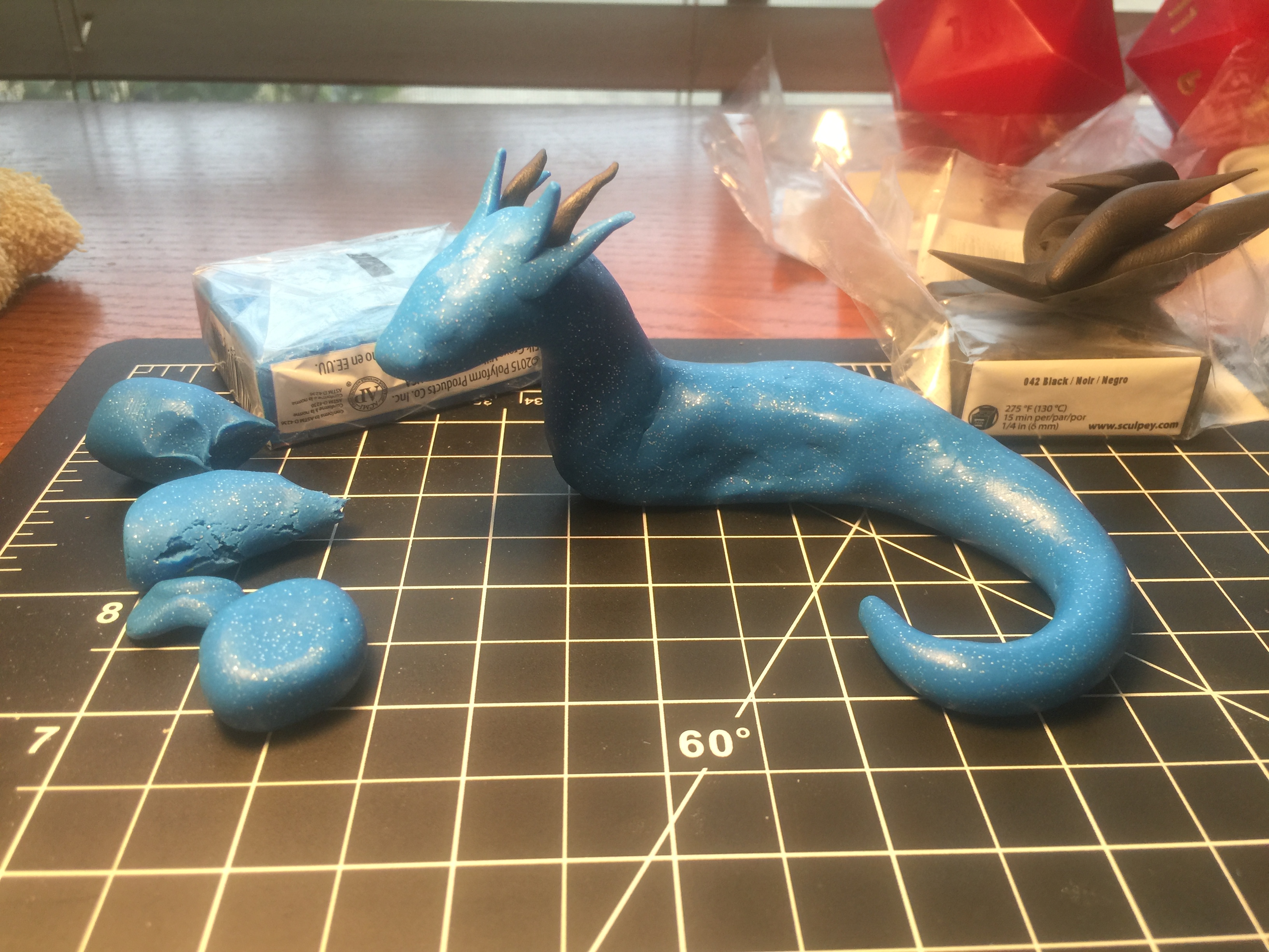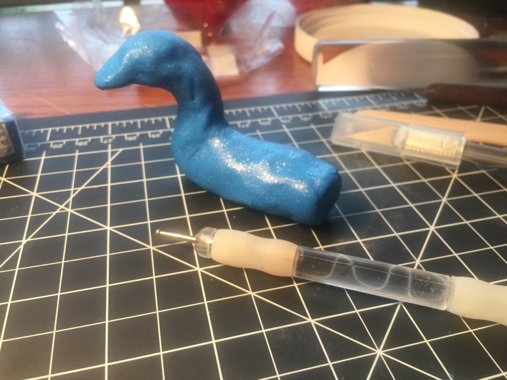 With the day of the convention rapidly approaching. I decided it is the perfect time to try my hand at making one of these adorable, fun, and intimidating creations. Let’s talk about the way it came together! The fist steps was to build out body shape. After taking some time and looking carefully at the steps of crafting Sculpey Dragon figures. I realized I would need to watch a few Sculpey tutorials. After viewing several I rapidly became less intimidated by the process.