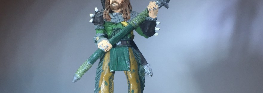 Todays' Figure of the Week is the Reaper Dark Heaven Legends Hans Bullman. He is a human fighter, ranger, or barbarian wearing leather or hide armor, pauldron and bracer wielding a swordstaff/polearm and a greatsword/bastard sword. Dressed as a frontiersman or mountainman, so I painted him in natural colors.