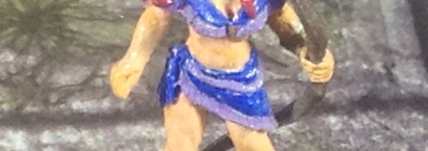 Today’s figure from Reaper, a human named Ahlissa of the Blade. She’s wielding a bow, wearing a halter top and mini-skirt. If I made her as a character, she would probably fit best as a Druid or Ranger. She can be bought on: Ahlissa of the Blade (Amazon) Ahlissa of the Blade (Reaper)